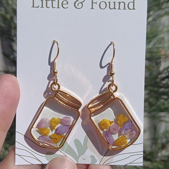 Hand picked, pressed, and set in UV resin, these earrings are all unique. All flowers are either from my own garden or from the Aussie native nursery I work at. They are lightweight in design and all have stainless steel hooks for sensitive skin.